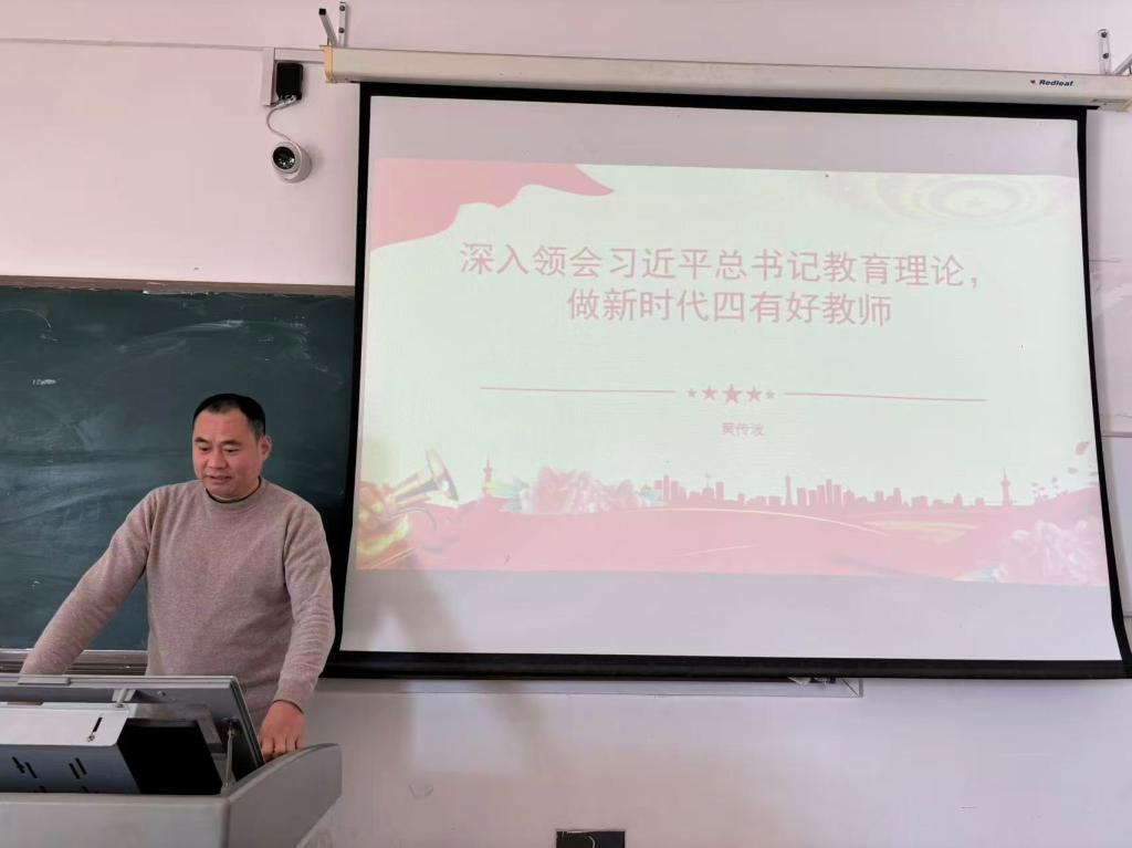 黄传波围绕主题进行系统阐述,结合国家“教育强国”战略和“教育家精神”内涵,强调教育工作必须坚持立德树人根本任务。他从宏观政策与时代背景出发,论述了坚持正确方向、加强队伍建设对教育事业发展的重要意义,并引导学生党员思考如何将“四有”好老师标准融入未来职业发展。学习现场氛围庄重。通过聆听讲解,学生党员对如何在时代大局中定位个人成长、在未来岗位上践行育人使命有了更深理解。