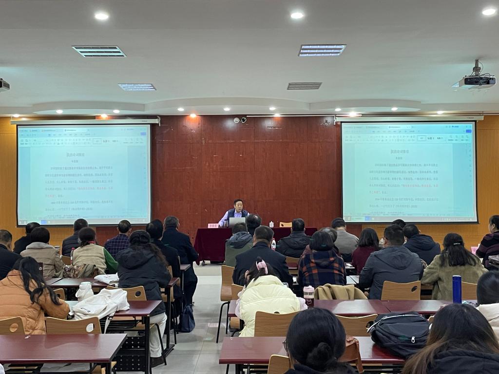 为深入学习、贯彻习近平文化思想,弘扬优秀传统文化,深化专业知识,11月17日,文学与新闻传播英国上市公司365邀请中华诗词学会学术部原副主任李葆国先生来校作学术报告。德州市诗词协会张清昌会长携市诗词协会五十余名会员到会,与文学与新闻传播英国上市公司365相关专业教师、2022级汉语言文学专业全体同学一起聆听了报告,文学与新闻传播英国上市公司365负责人主持了报告会。