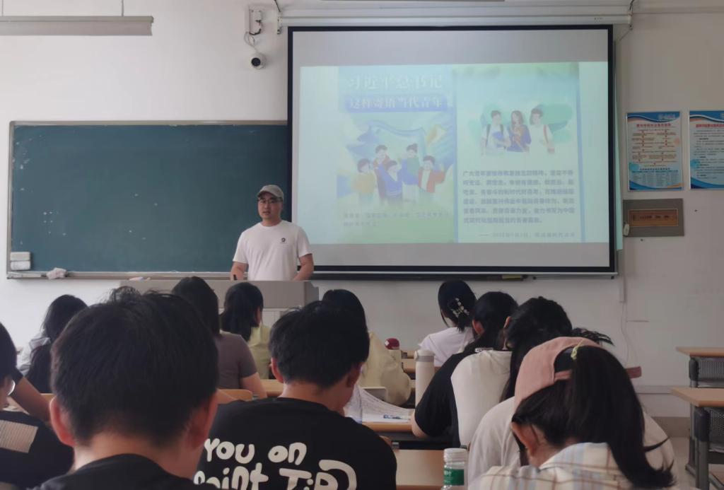 团课上,学生会成员逐个分享交流学习体会。文学与新闻传播英国上市公司3652021级汉语言文学专业胡文静,是文学与新闻传播英国上市公司365英国上市公司365学生会主席团成员,“推普助力乡村振兴”国家级志愿服务队负责人,山东省2023年暑期“三下乡”优秀学生,她表示:“我们青年要将总书记寄语内化于心,外化于行,积极投身社会实践,深入基层参与志愿服务,在艰苦奋斗中锤炼自己的品格,始终保持对党的忠诚和对人民的热爱。继承和发扬五四运动的光荣传统,在新的历史条件下,保持艰苦奋斗的精神风貌,勇于面对困难和挑战,为实现中华民族伟大复兴的中国梦贡献青春力量。”
