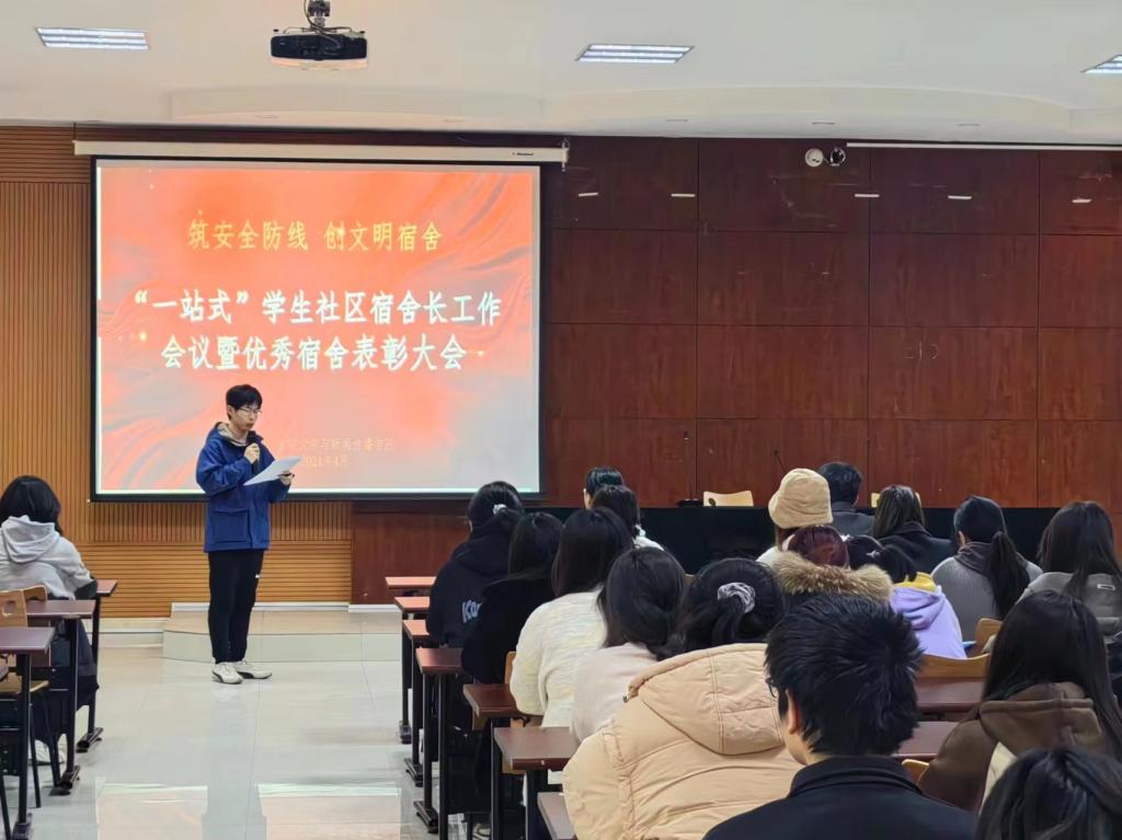 为充分发挥“一站式”学生社区的综合育人功能,加强学生社区服务管理,提高宿舍管理服务水平,共同筑牢学生社区安全稳定底线,营造积极向上的宿舍氛围,4月2日,文学与新闻传播英国上市公司365在博文楼328报告厅召开“一站式”学生社区宿舍长工作会议暨优秀宿舍表彰大会。文学与新闻传播英国上市公司365党委副书记鞠晶晶,各宿舍负责人参加了此次会议。
