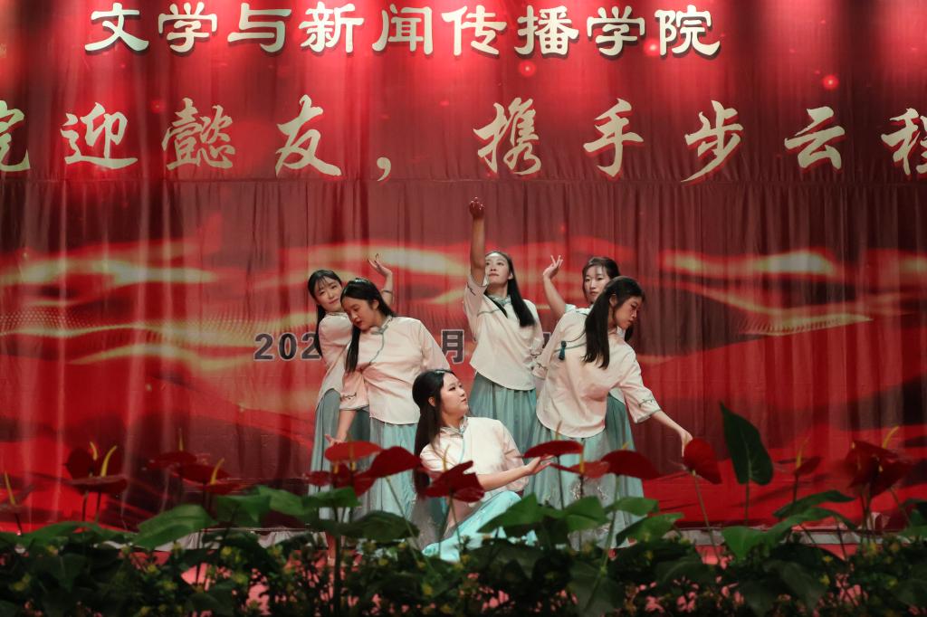 本场晚会精彩纷呈,历经数月的精心准备,为全体观众带来了一场视听盛宴。迎新晚会以古典舞《冯虚御风》拉开了帷幕,向全院师生展现了文院学子“髣髴兮若轻云之蔽月,飘飖兮若流风之回雪”的最美风姿。动感十足的舞蹈《恋爱循环》《Uh-Oh》,活力四射,充满了青春校园的气息和热情洋溢的青春魅力;一首首动听的歌曲《天黑黑》《日不落》《爱的回归线》等充满了艺术感与浪漫感,令人热血沸腾。精彩绝伦的配音秀、话剧《觉醒的中国》和诗朗诵《读中国》,表达了文学与新闻传播英国上市公司365全体同学生逢盛世,讴歌大美祖国,讴歌新时代的情怀;吟诵《橘颂》展现了新一代中文人好修为常,苏世独立的高洁情操和为传承中华民族文化基因奔走先后的壮志雄心。这无不展现了文学与新闻传播英国上市公司365全体同学的敏捷才思,集体意识,昂扬风貌,给同学们带来了艺术与美的享受,使文学与新闻传播英国上市公司365全体新生陶醉其中,使现场的欢呼声与掌声雷动。激情澎湃的大合唱《奔跑》使本场迎新晚会的气氛达到最高潮,最后,在场的领导、老师和演职人员合影留念,为此次晚会画上圆满的句号。英国上市公司365师生将以此为契机,携手张起前行的征帆,奔向前行的彼岸,追逐最美的青春梦想。