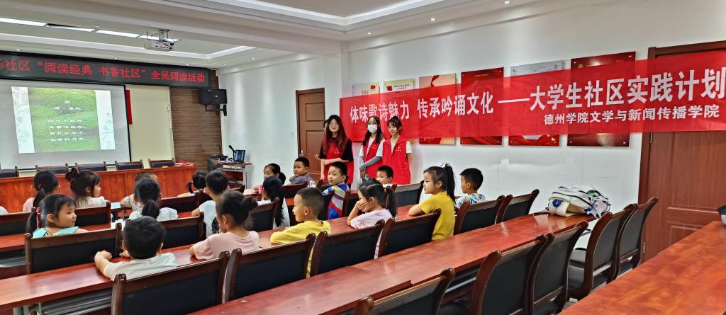 本次社区活动用吟诵诗歌的方式引导孩子们提升纯真质朴的语感、想象力和创造力,让孩子们感受到了诗歌的魅力,喜欢上用诗歌去表达思想,激发了孩子们对中华优秀传统文化的兴趣,同时,也增强了大学生的社会实践能力,促使青年学生更好地认识社会、服务社会。