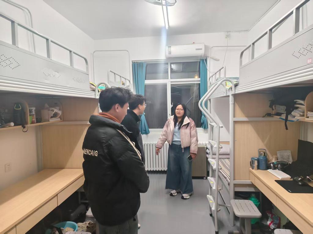 走访过程中,辅导员老师走进多个宿舍,询问大家日常生活、学习进度及遇到的困难。在与同学们的亲切交谈中,老师耐心倾听大家关于学业规划、校园生活的想法与困惑,并结合自身经验给出建议。老师提醒同学们注意宿舍安全,不要使用违规电器、明火设备做到人走断电电子设备不要在床上充电严禁在宿舍内吸烟保持宿舍卫生也希望同学们增强自我保护意识,保持卫生整洁,舍友间要互帮互助,共同营造和谐融洽的宿舍氛围。