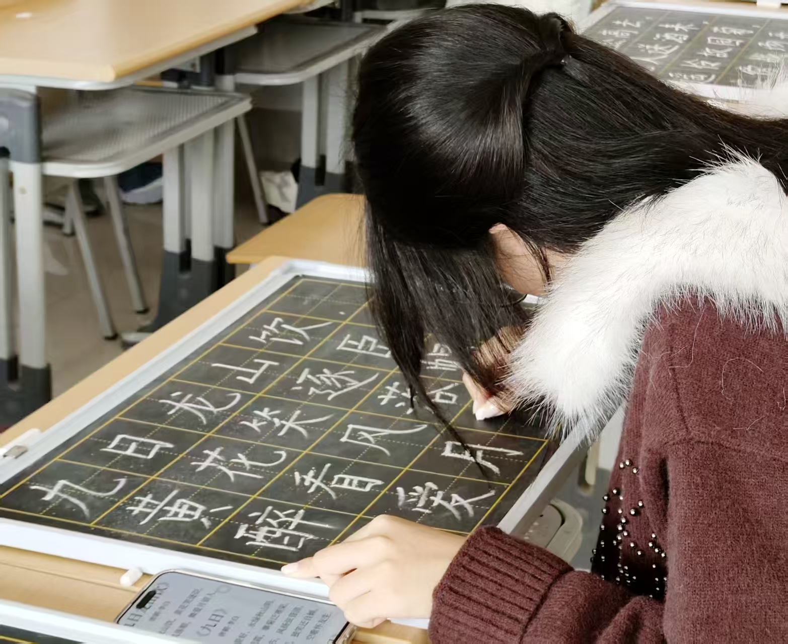 独在异乡为异客,每逢佳节倍思亲。同学们以笔墨为媒,围绕重阳经典诗词、敬老寄语等内容进行书写,传递节日温情与文化内涵。纸页间,不同书体各具风骨,每一笔墨痕都承载着同学们对传统文化的理解与共鸣。书法艺术与重阳意蕴相融合,展现出传统节日在当代校园中的生动诠释。