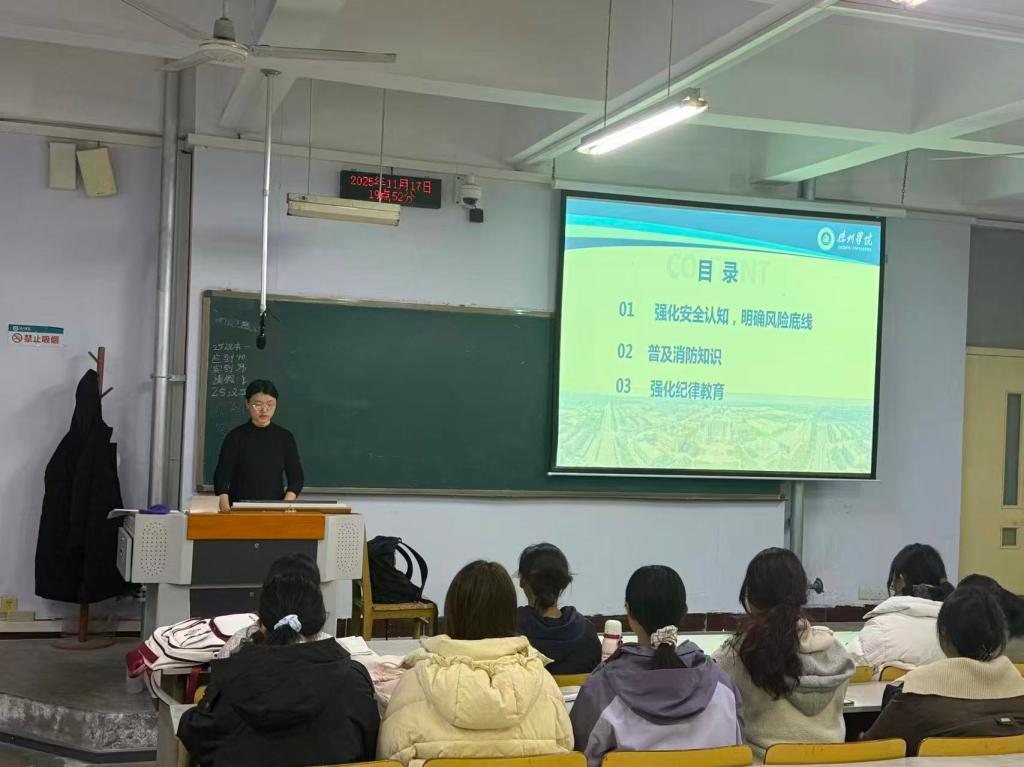 本次班会围绕消防意识强化、校规安全遵守等内容展开学习。通过结合高校火灾真实案例,明确了违规用电、堵塞通道等行为的危害,引导学生自觉规范消防行为。班会过程中,同学们认真听讲,结合自身生活场景积极讨论,逐步厘清了“哪些行为有隐患、遇到火情怎么做、日常防护如何做”的认知,深刻认识到消防安全并非“远在天边的警示”,而是藏在“拔插头、清通道”等日常细节中的习惯。会后,不少学生主动整改宿舍安全隐患,并在班级群内分享消防知识,形成了“学消防、懂消防、守消防”的良好氛围。