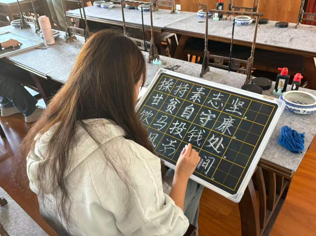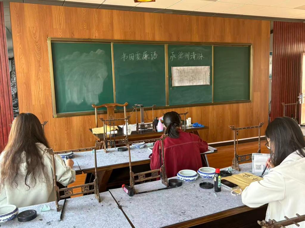 本次活动旨在通过毛笔书写的艺术形式,引导同学们感悟传统书法魅力,在挥毫泼墨间传承德州清廉文脉与中华优秀传统文化。活动紧扣“弘扬廉洁文化”核心,同学们选取田雯廉洁诗词及相关事迹典故,以书法为载体,展现对清廉精神的敬仰与追求。在宣纸上的一撇一捺,不仅是对书法技艺的锤炼,更承载着对廉洁文化的深刻理解,充分彰显出新时代学子传承清廉基因、弘扬传统文化的使命担当。