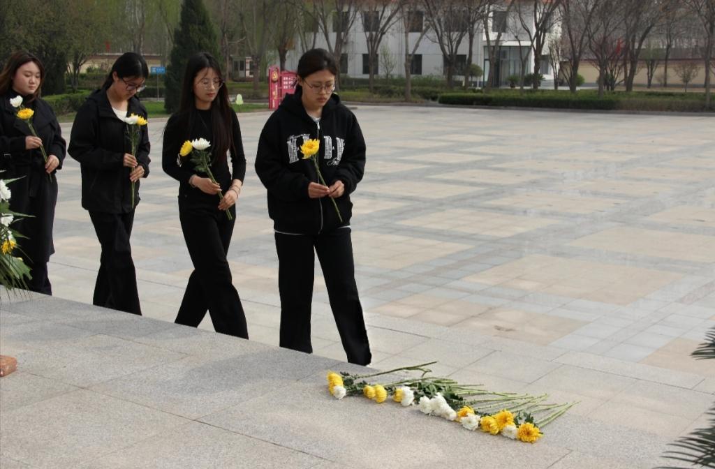 活动现场庄严肃穆,全体学生身着黑衣,神情庄重,肃立于人民英雄纪念碑前,向革命先烈默哀三分钟。默哀结束后,学生代表发言,深情回顾先烈为民族解放不懈奋斗的峥嵘岁月,号召同学们铭记历史、勇担使命,将个人理想融入国家发展大局。随后,同学们手捧白菊花,依次向革命先烈敬献鲜花、行鞠躬礼,表达深切缅怀与崇高敬意。