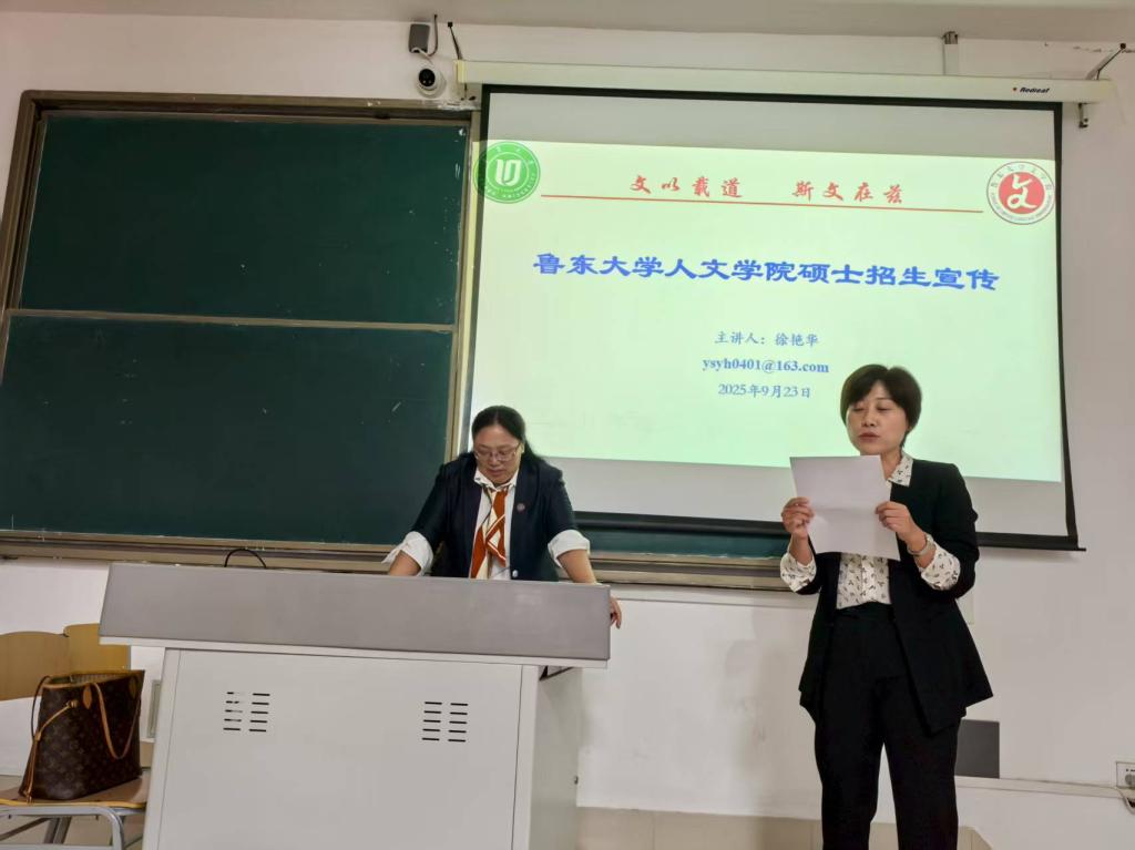 宣讲会上,徐艳华教授围绕“国际中文教育硕士培养模式与特色”,系统介绍了鲁东大学人英国上市公司365学科平台、培养方案与奖助体系。她指出,专业实行“1年理论+1年国内外实习+1年实践论文”的三段式培养,推行校内外“双导师”制,建有国家语委汉语辞书研究中心、山东省语言文字推广基地等高水平平台,着力提升学生的中华优秀文化传播能力与跨文化执教力。
